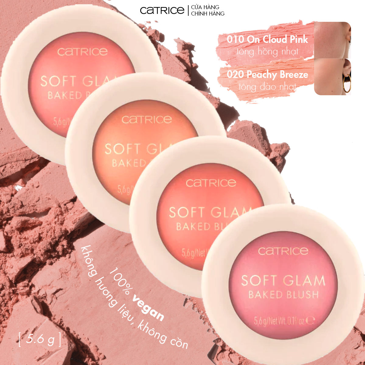 Phấn má hồng bắt sáng thuần chay Catrice Soft Glam Baked Blush 5,6g