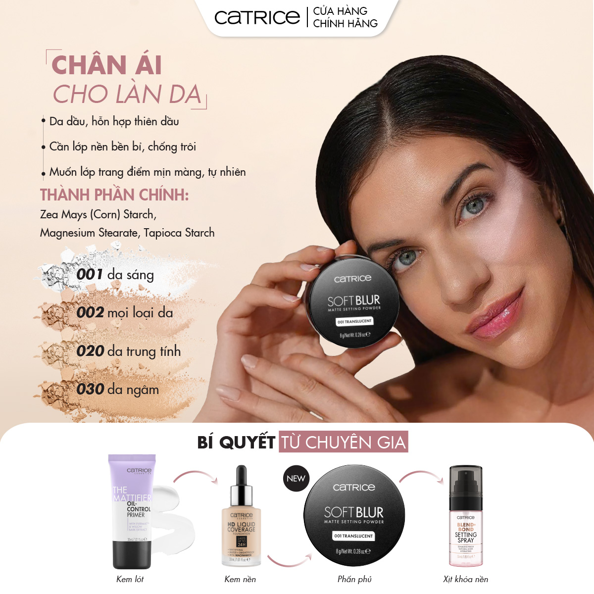 Phấn phủ mỏng nhẹ kiềm dầu Catrice Soft Blur Matte Setting Powder 8g